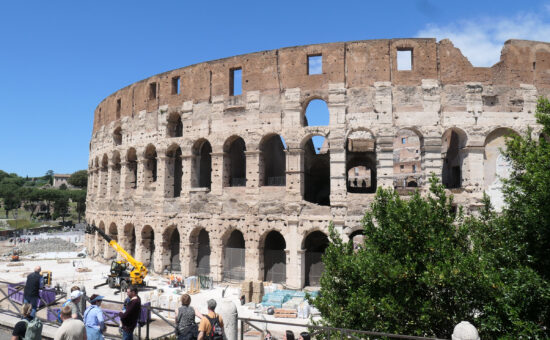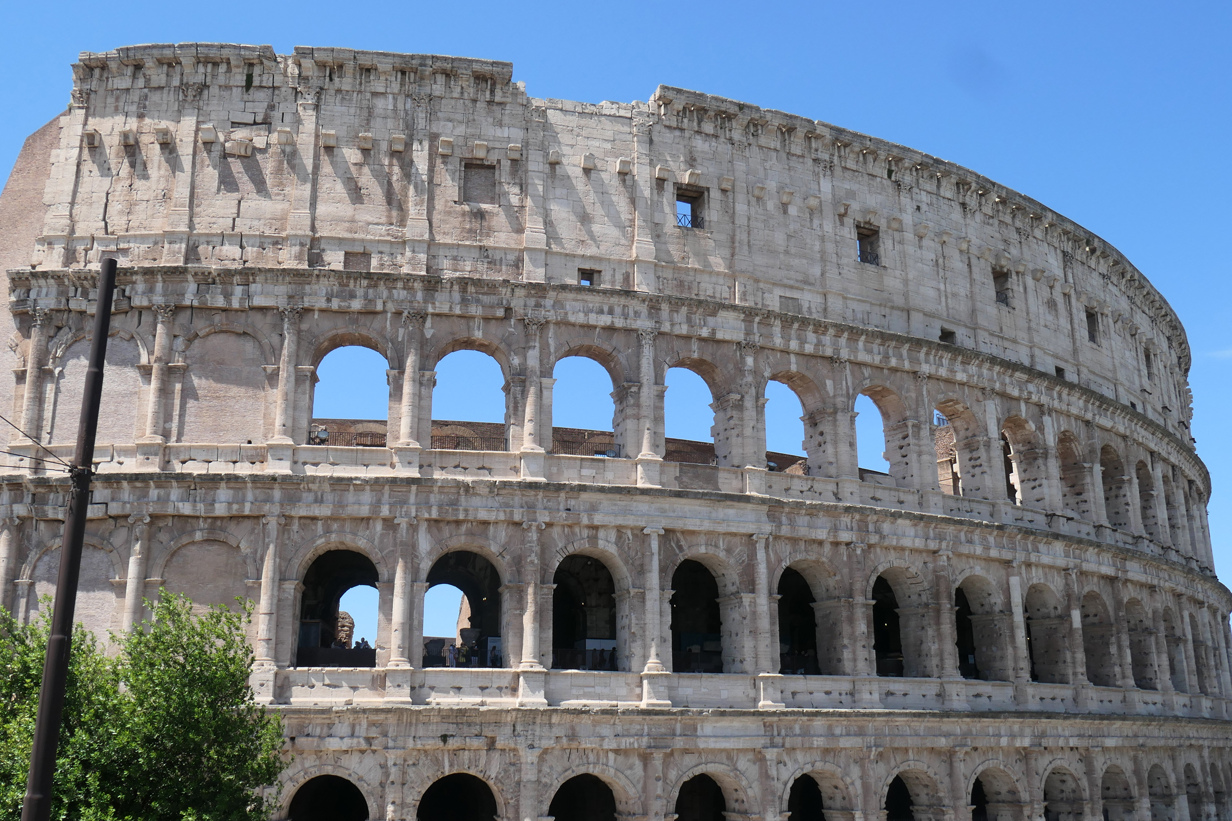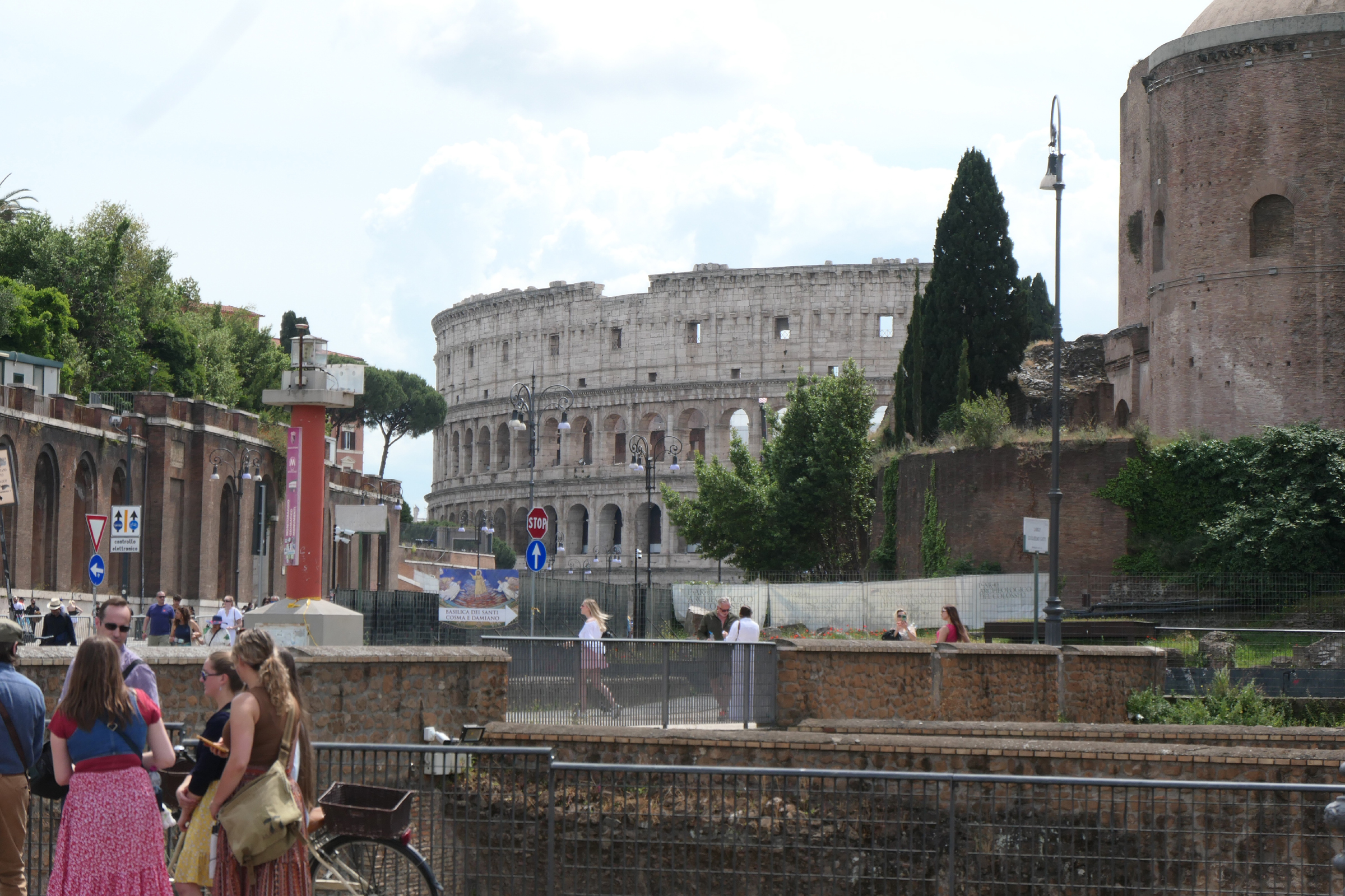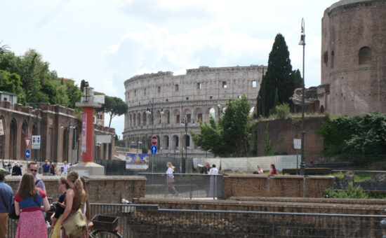 Wenige Schritte weiter befindet sich der Eingang zum Kolosseum, dem größten je erbauten Amphitheater. Ein Teil seiner Fassade wurde im Laufe der Jahrhunderte abgetragen und findet sich in anderen römischen Bauwerken wider.