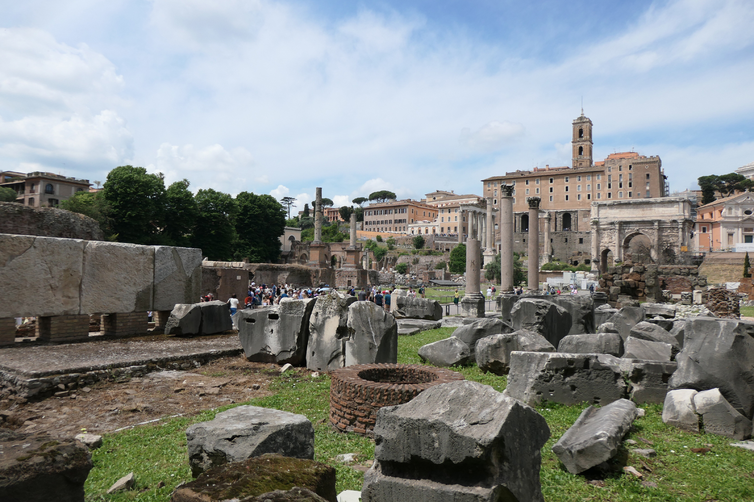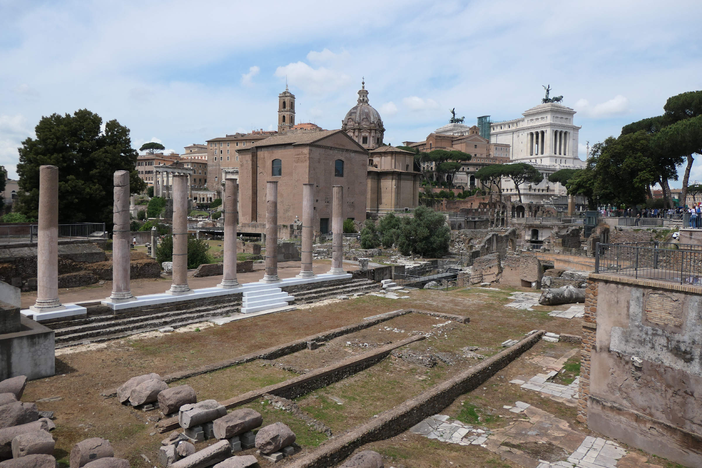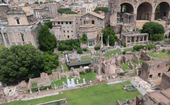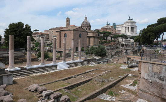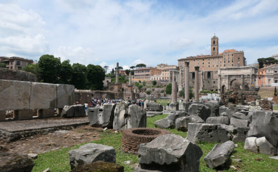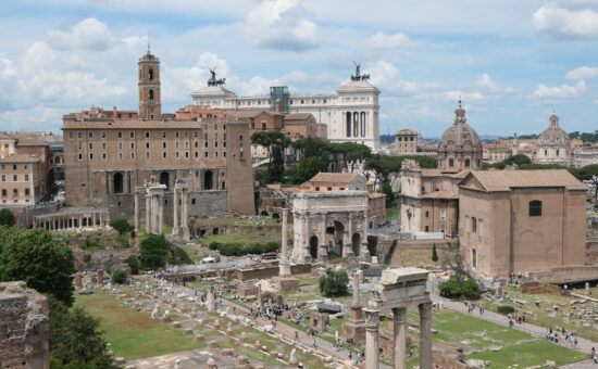 Mit dem Forum Romanum, dem ältesten römischen Forum und der größten Ausgrabungsstätte Roms, gibt es eine weitläufige Geschichtslandschaft mitten in der Stadt. Umgeben von den drei Stadthügeln Kapitol, Palatin und Esquilin spielte sich hier einst das politische, wirtschaftliche, kulturelle und religiösen Lebens Roms ab. Hier fanden große Triumphzüge statt, wurden Verbrecher verurteilt, kehrten Gläubige in Tempeln ein. Überreste von Basiliken und öffentlichen Gebäuden rahmen den Platz ein. Erst der Bau der Cloaca Maxima, des unterirdischen Kanalsystems, legte das sumpfige Gelände trocken.