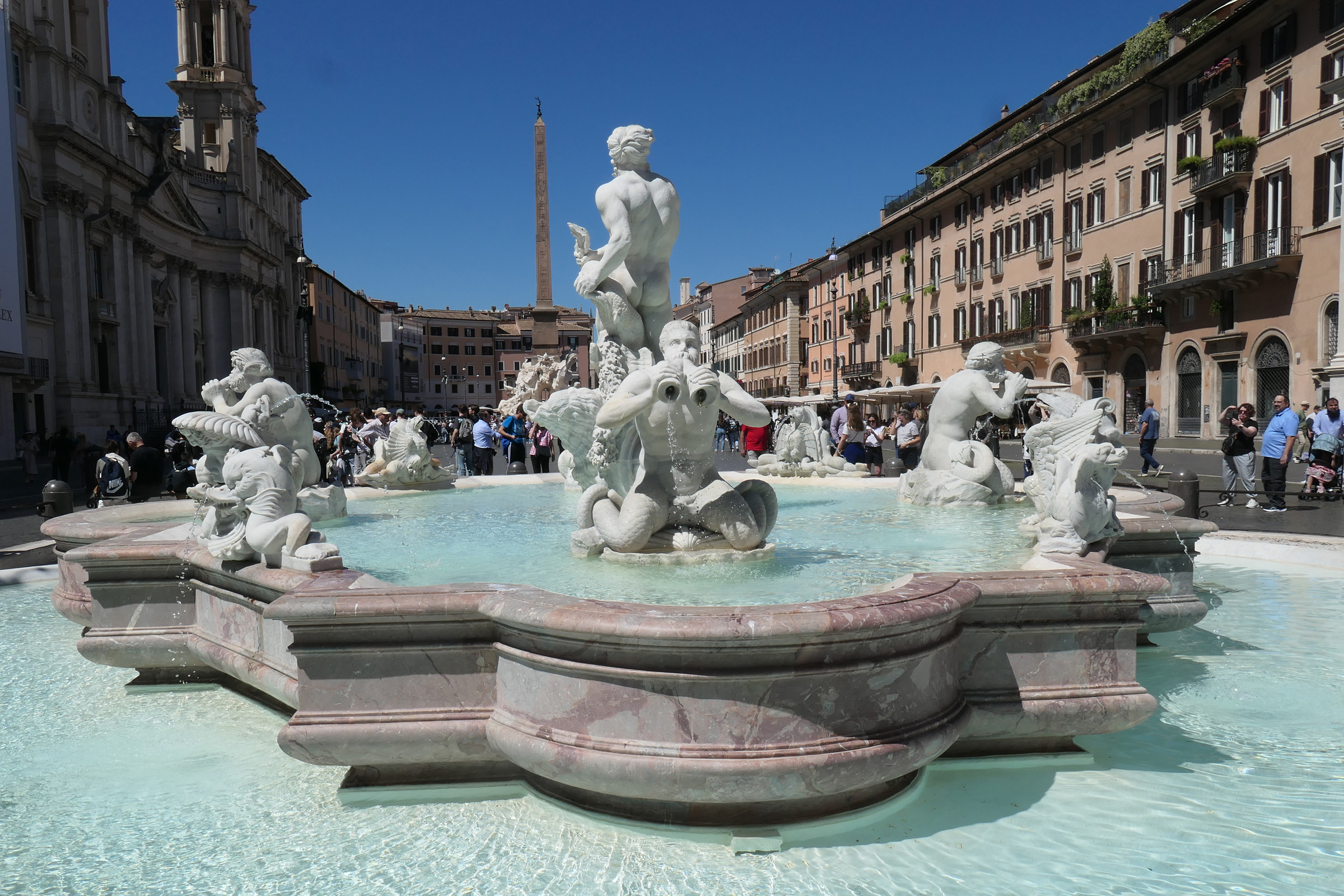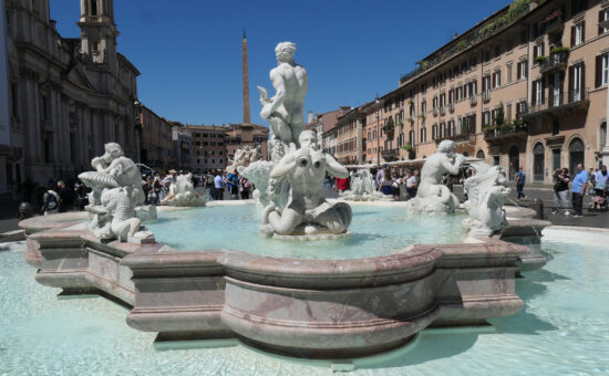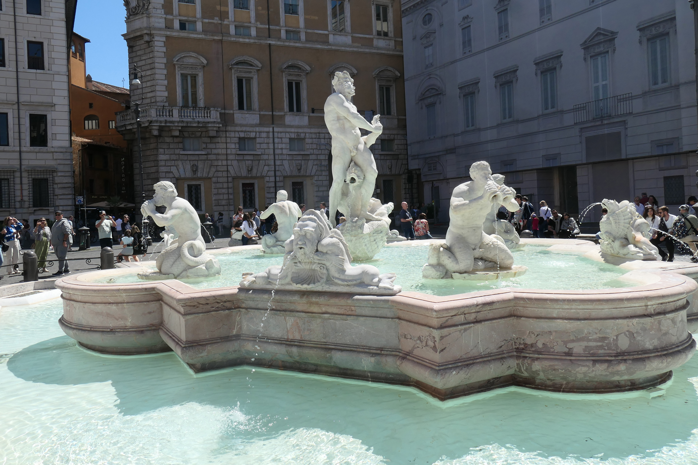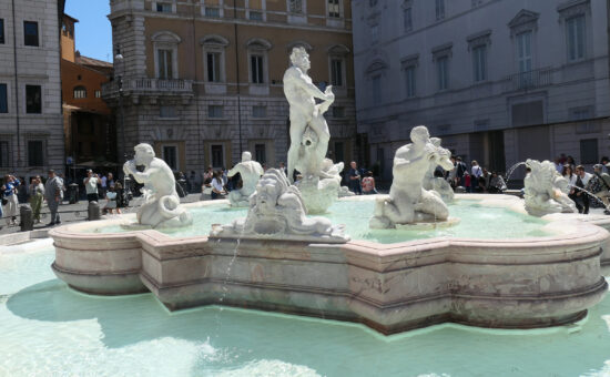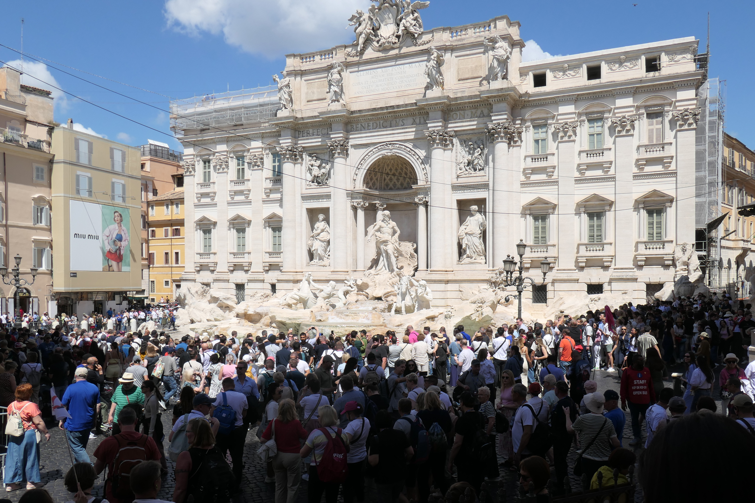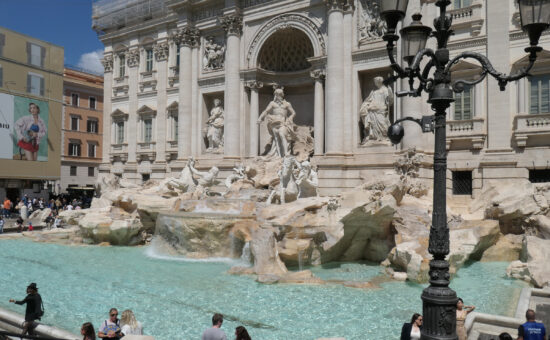 Wer könnte in Rom gewesen sein, ohne den berühmten Trevi-Brunnen zu besichtigen? Aber selbst wer da war, muss ihn nicht unbedingt gesehen haben – denn unzählige Touristinnen und Touristen stehen mit ihren Handykameras davor und geben kaum Sicht frei auf den Meeresgott Poseidon, der da auf einem Streitwagen einherkommt, gezogen von Pferden und zwei Tritonen, Söhnen des Meeresgottes.